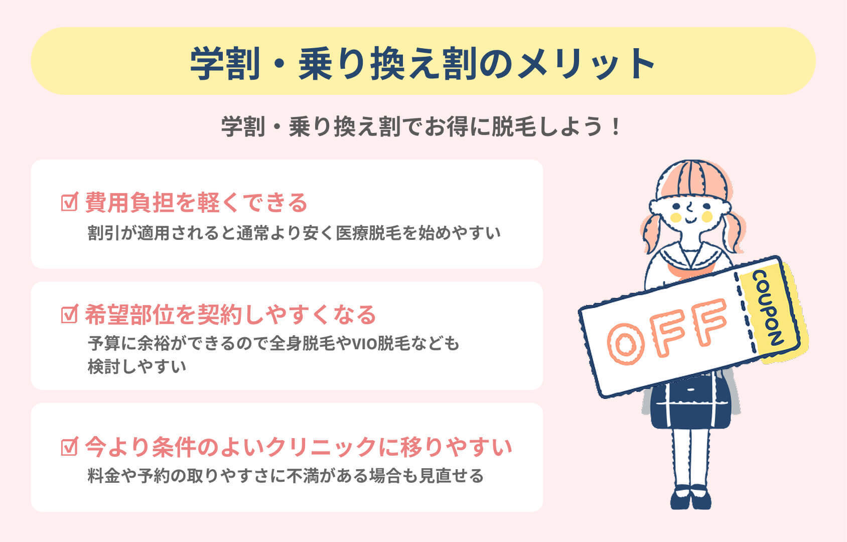 新潟で安く医療脱毛するポイントは次の通りです。