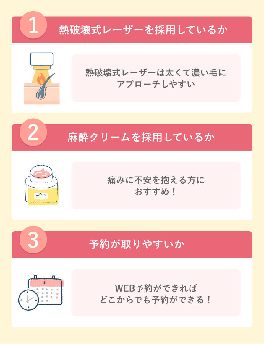 新潟で医療脱毛クリニックを選ぶなら、以下の3点を確認するのがおすすめです。